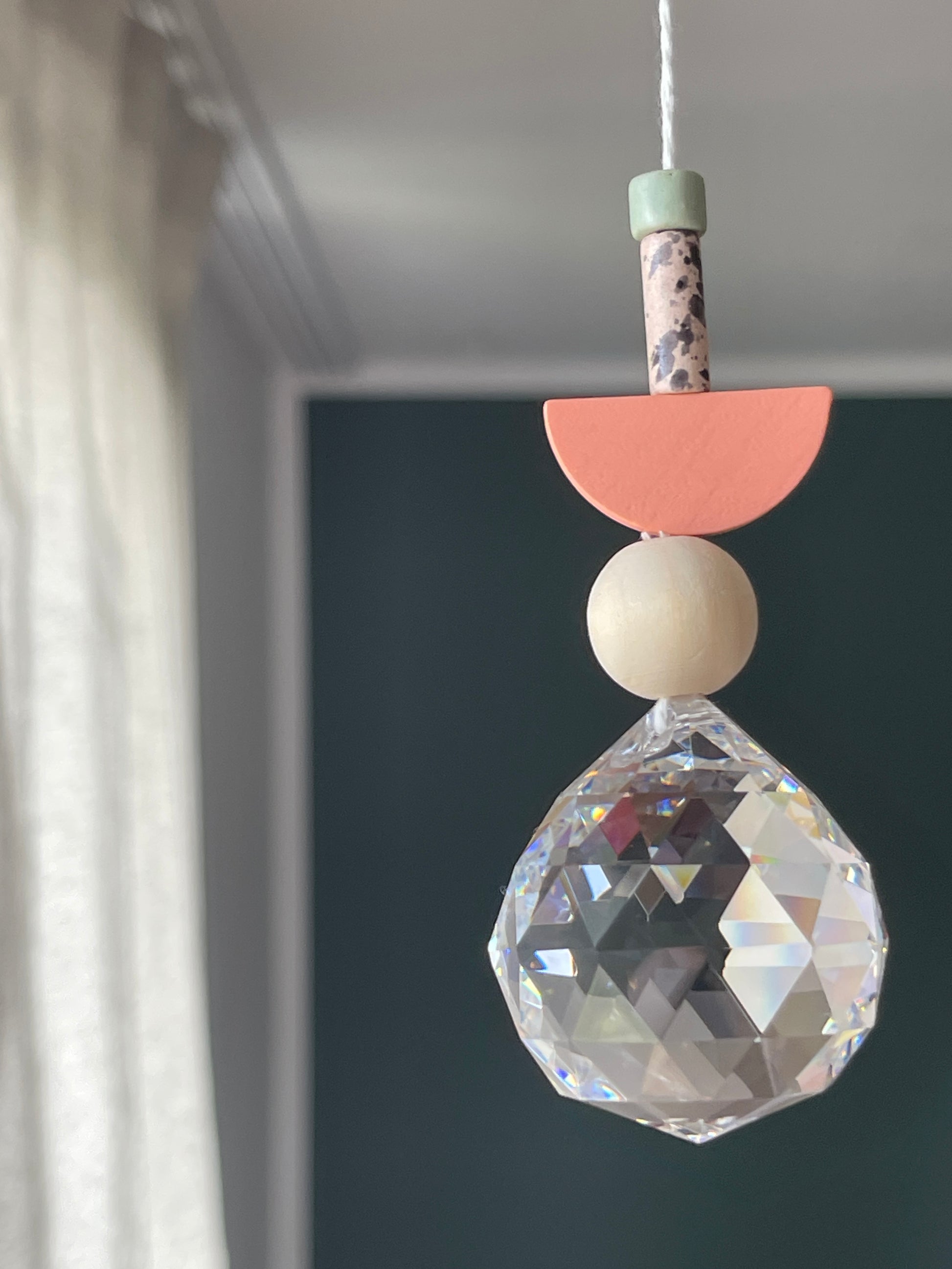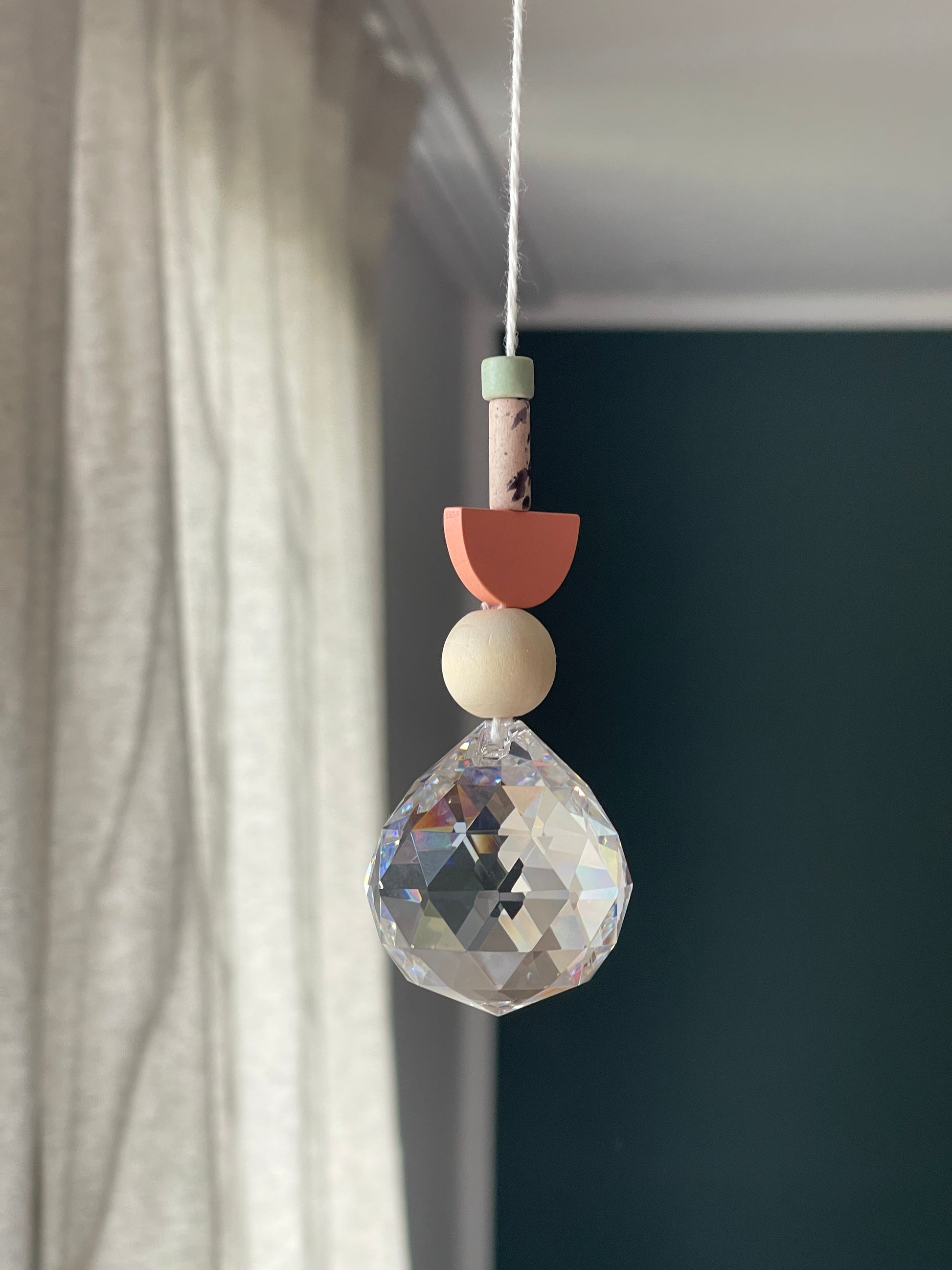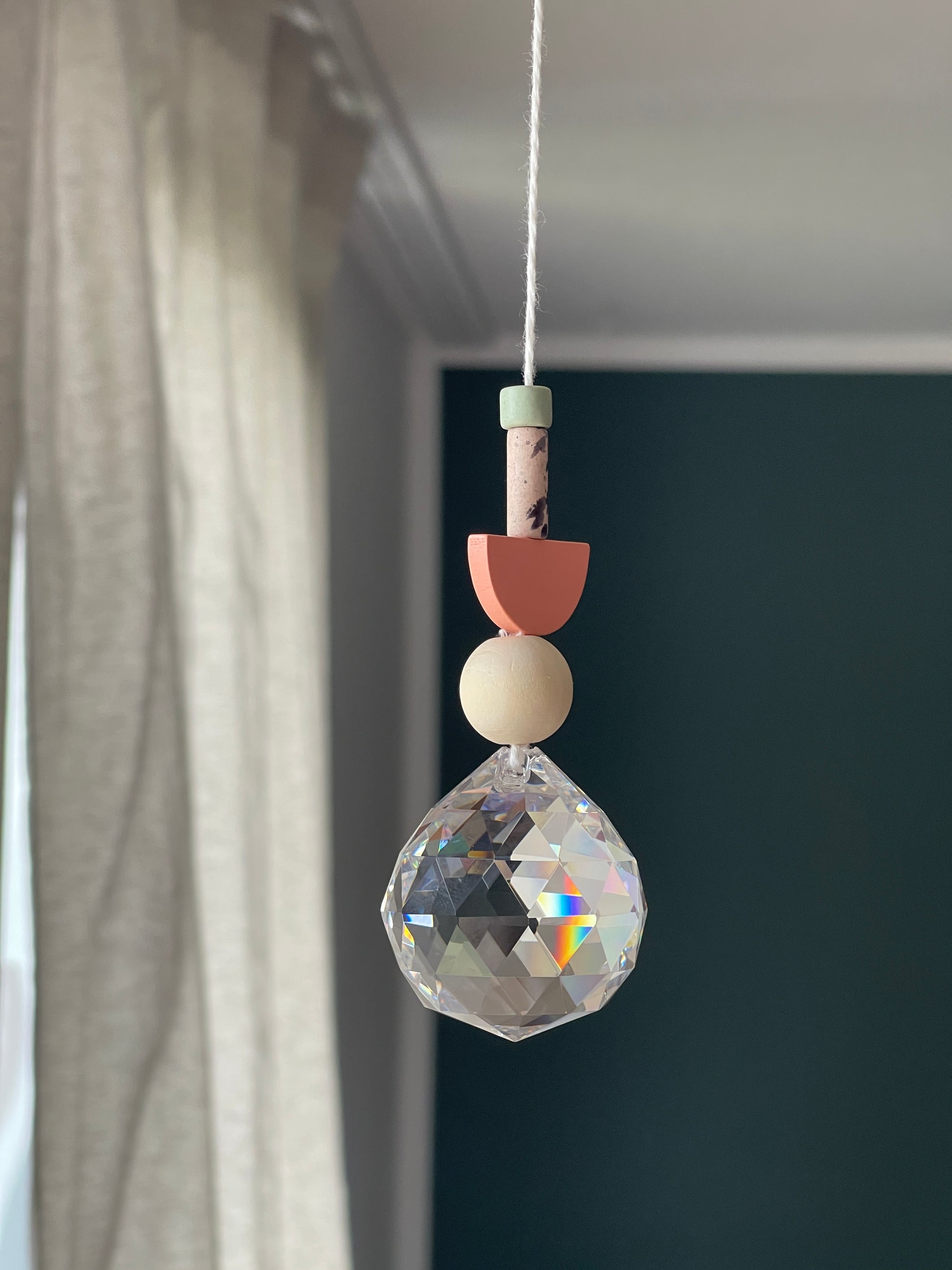 Wenn dieser wunderschöne Anhänger erst einmal in deinem Zimmer hängt, verwöhnt er dich mit kleinen bunten und frechen Regenbögen. Wenn "Edda" die Sonne einfängt, beginnt der Raum zu strahlen. So einfach wird dein Alltag bunter.